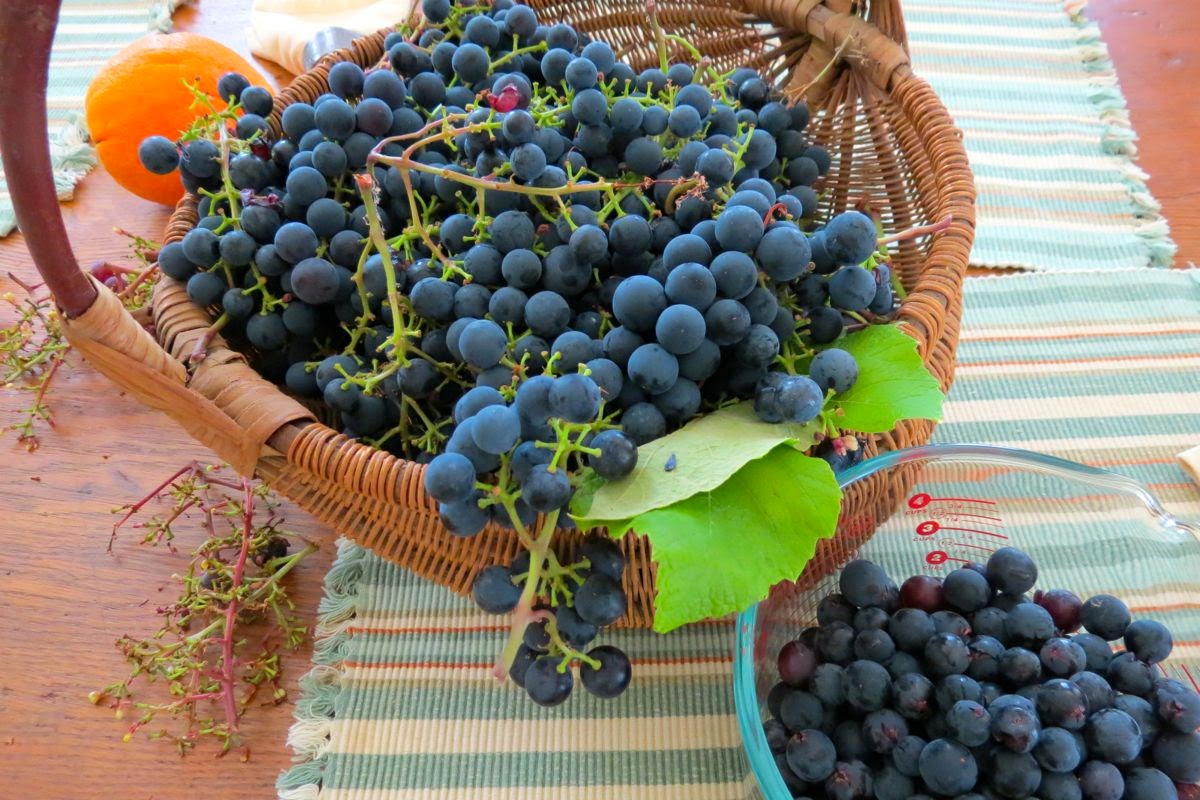 Getting ready to preserve the Concord grapes. I separate them from the stem, rinse them in cold water, and let them dry. Next thing I am tackling is preserving grape leaves for dolmas and other things.