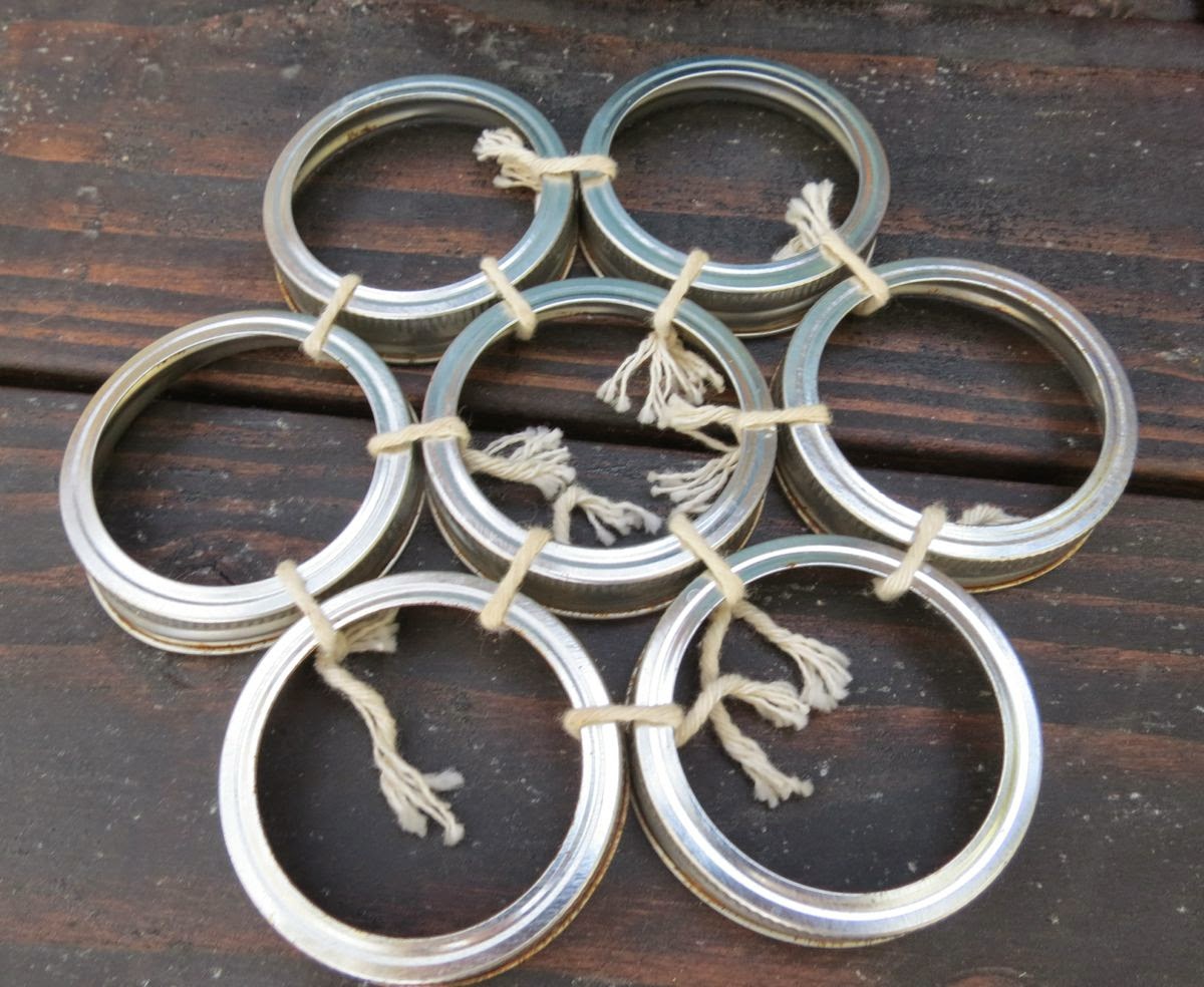Wondering what to do with all your old rings? Ingrid ties them together and uses them as a rack for the bottom of her water baths.