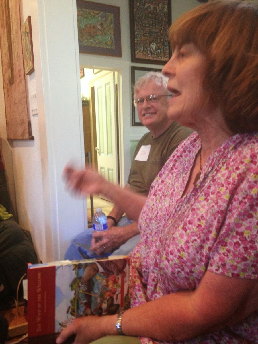 Liz with John (an enthusiastic volunteer) in the background. John read some snippets of a book he loves.