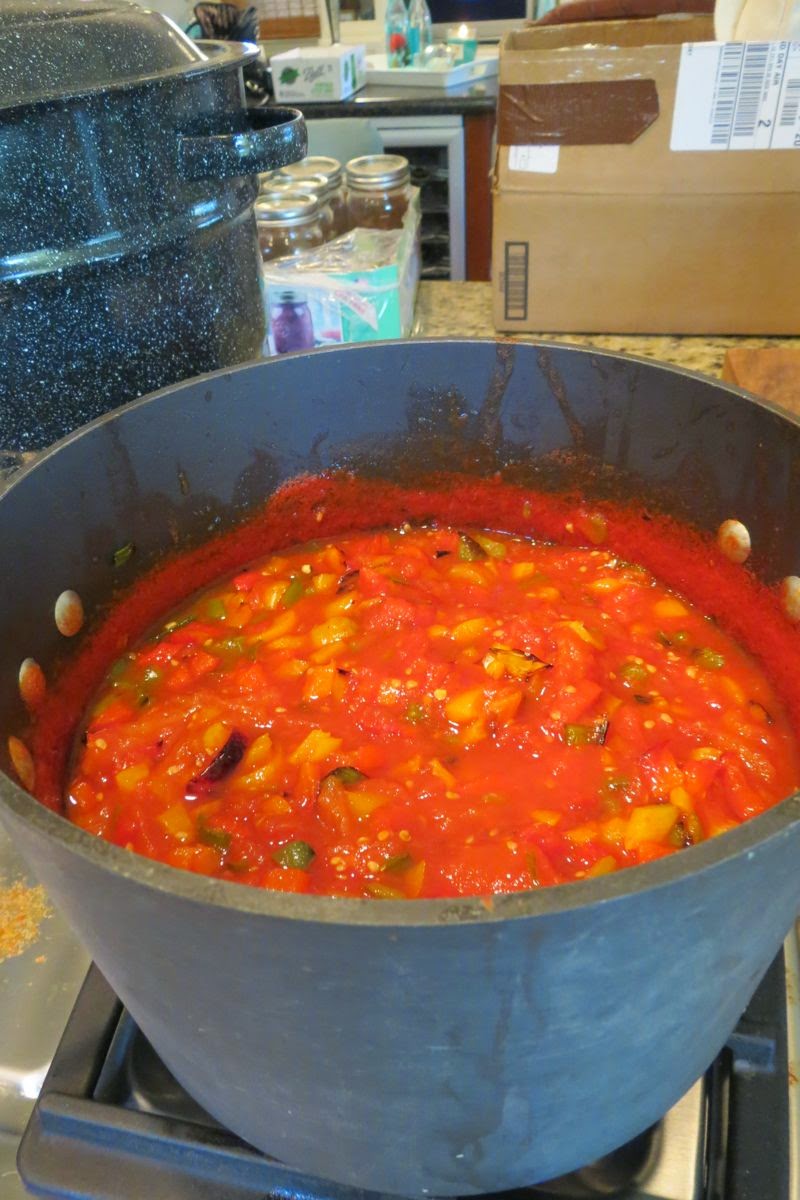 Salsa, or what Gram called "chila sauce," bubbling in the pot.