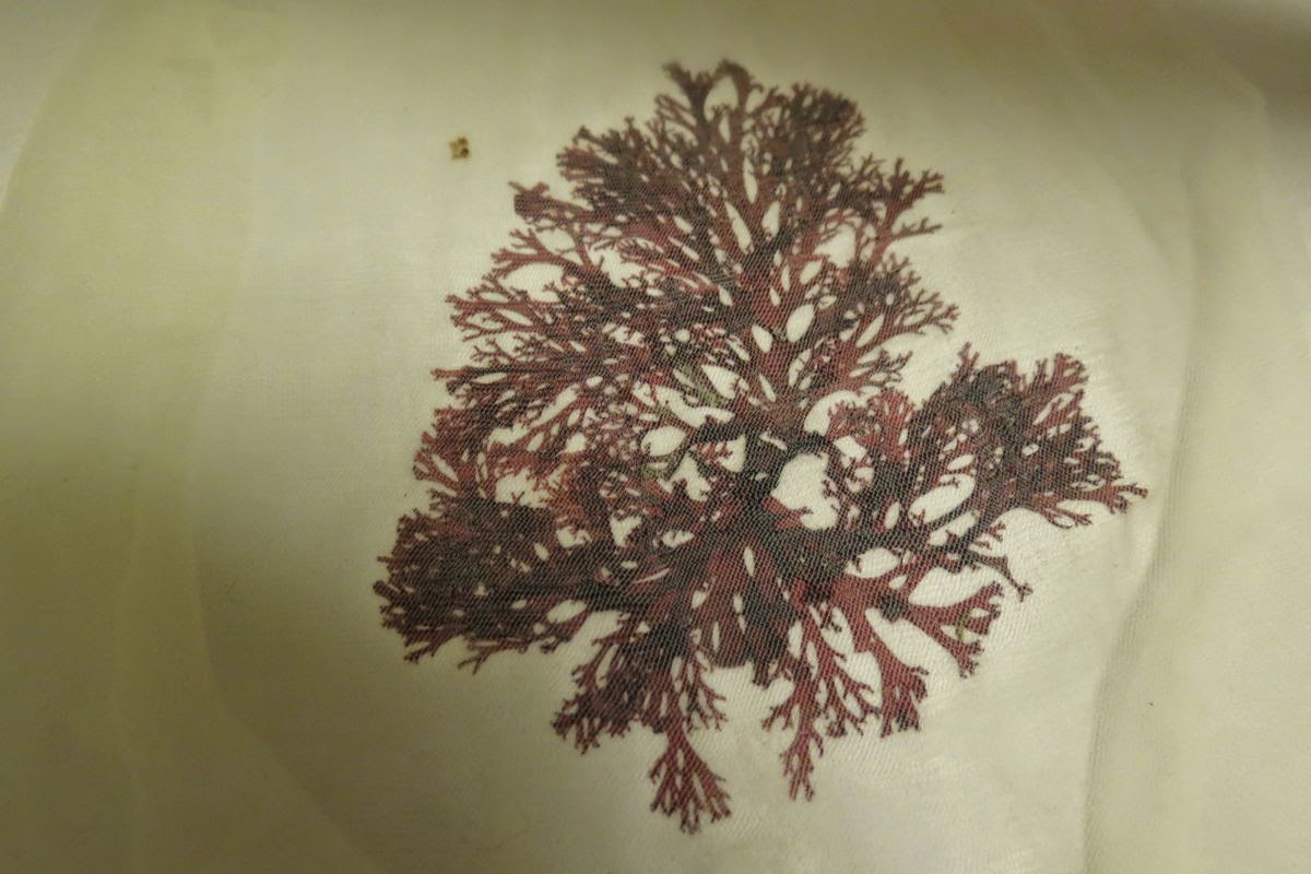This is the seaweed after two days. I change the paper daily to keep moisture away from the specimen. When I am finished with this, I'll mount it on fine rag paper and put it under glass, or maybe under the glass of a coffee table or my tea table. Isn't it elegant?