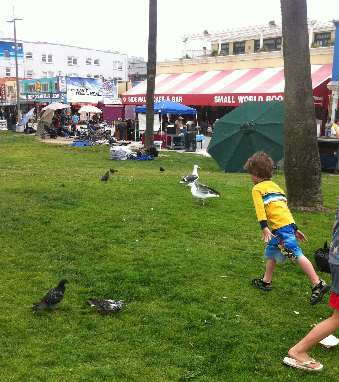 My California Adventure: including Kid B's pigeon impersonation and the scariest gang at Muscle Beach
