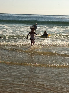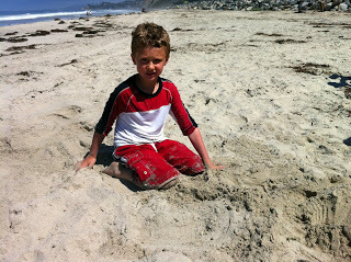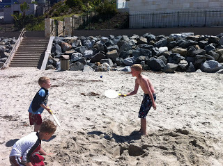 Kid C thought the "Watch out for rocks" sign at the beach really said, "See how many secret places on your person in which you can hide sand!" He's still sneezing the stuff.