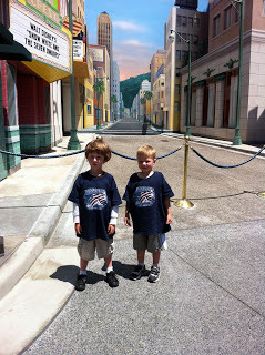 Kid B and Asher: Thinking to themselves: "Does everyone realize the street behind us is fake? Seriously, adults. It's a wall. A painted wall. Did we pay money for this?"