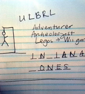 Okay, this post is getting too long. I'll leave you with this hangman board from our game with Kid C. The clues we gave were: