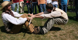 Here you see two swarthy men performing the daily task of "Breaking Stick"