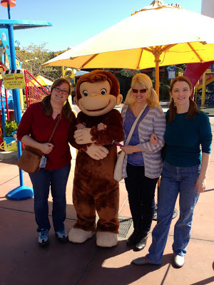 Curious George was a little too curious about my pigtails. He kept pulling on one of them, and then he'd shrug innocently as if to say, "Hey! I'm a monkey!" Like that excuses it...