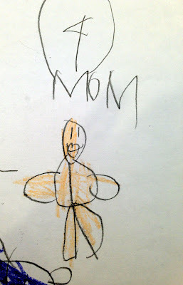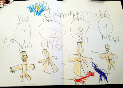 So, Kid B came home the other day, proudly displaying this family portrait he'd drawn.