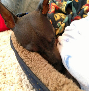 Last night I gave Chewy a bath, and then lathered him up with baby lotion, dressed him in new clean pajamas and rocked him to sleep.