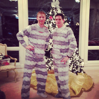 Laughing at the pajamas my mom bought for my hubs and my brother-in-law...