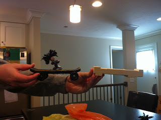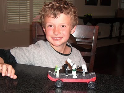 Kid C and his Pinewood Derby Skateboard, powered by the Force.