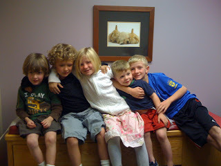 Of course we know we are not out of the woods. The woods are infinite in cases of pancreatic cancer. But, as Martha Stewart would say, holy crap, Batman, this is a good thing! I will leave you all with a picture of my dad's grandkids at his clinic. They all went together to get their immunization shots. I don't know why I found it so cute. Maybe it's because they looked so happy even though they knew what was coming.