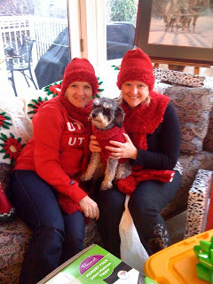 Yep. Your eyes do not deceive you. She bought us matching hats and scarves, that in turn matched the dog.