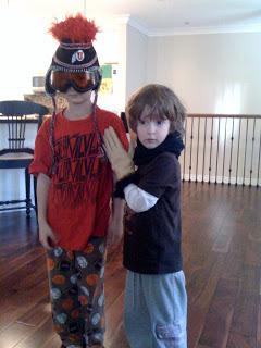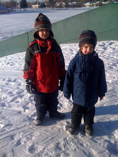 Kid C and Kid B, in a dress rehearsal for the cold weather.