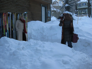 Not only is it cold, but there are a lot of skiers who roam the streets, so no matter where we went, we had an audience. Most of the people watching had a visible little thought bubble above their heads that said: