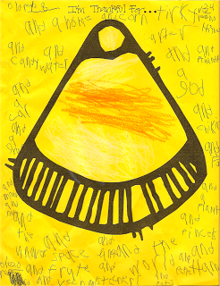 Kid C had an assignment to write one thing he's thankful for, inside a drawing of a candy corn. Here's what he turned in: