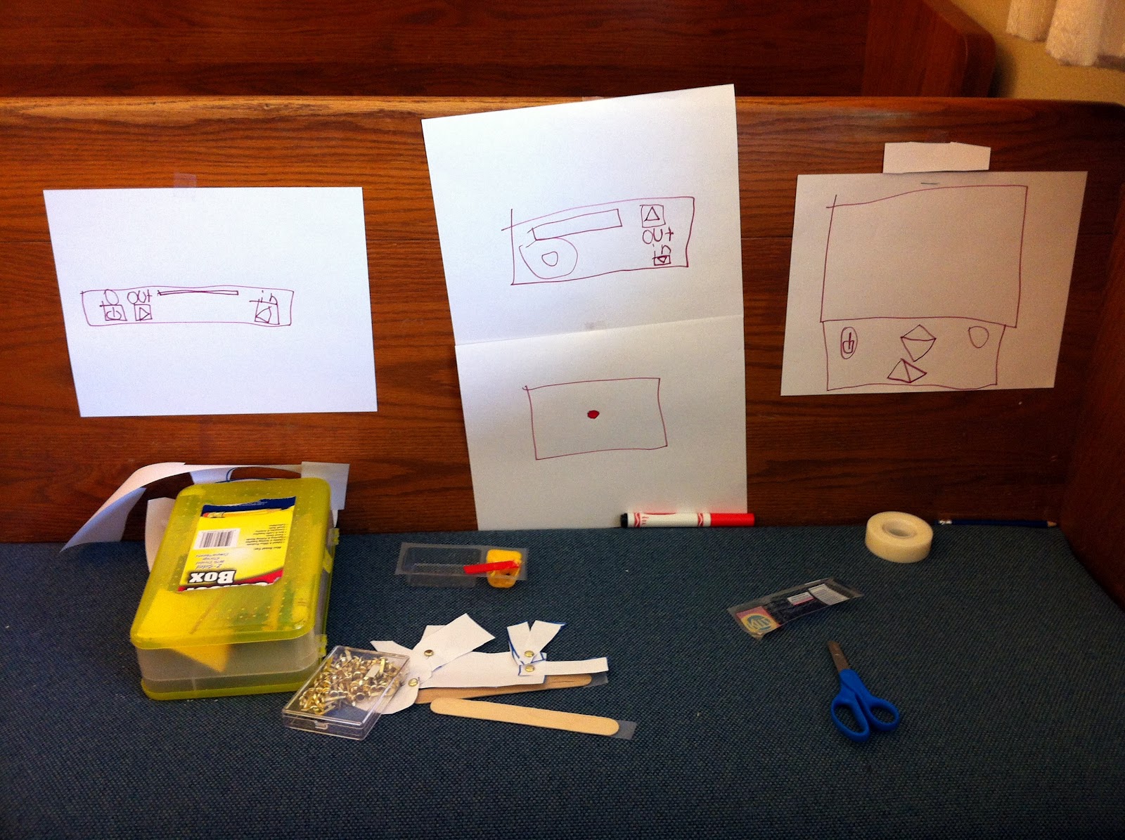 Other children are coloring pictures of Jesus. Kid B made his own XBox game console.
