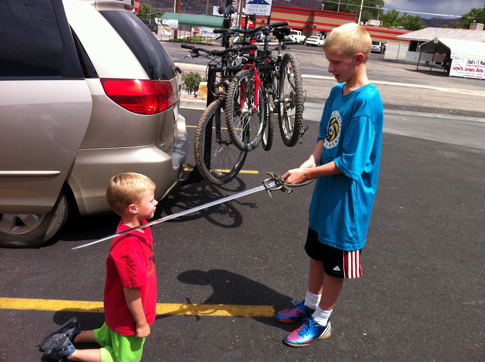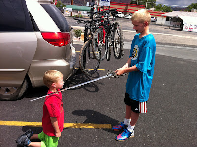 My nephew wanted a real sword from the festival, so he appealed to my mom, who of course bought him one. My sister bought him a bow and arrow for christmas. For his birthday, I guess there's nothing left to get him but a handgun.