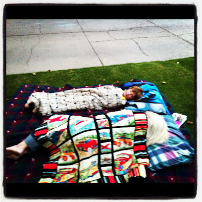 Last night, I was lying (laying?) on the grass. Kid B saw me, and immediately ran inside the house. He emerged a few minutes later with three blankets and two pillows.