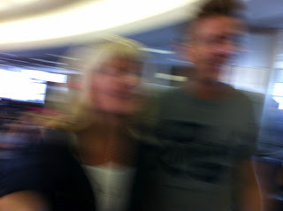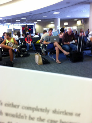 And I was standing in line right behind Jef trying to board the plane, speaking softly into my phone, describing how the person in front of me smelled like soap and lavender and his waist was not squishy. Please say that he couldn't hear me. Please.