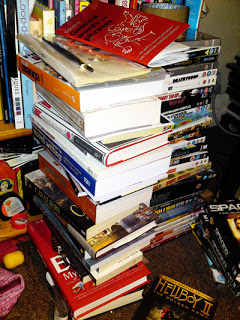 A few weeks back, blogger Ali Hale of Aliventures posted an entry about clutter and creativity. What, I hear you ask, is a post about tidying doing on a blog loosely dedicated to writing and other creative endeavours? Well, I've come to realise that it's difficult to be truly creative when you're drowning in a sea of your own junk.You see, I live in a studio flat. I know, I know, I've just shattered the illusion that I've made my supervillain lair under a volcano or in an abandoned tube station (or have I? maybe this is all just fiction......no, it's true) Problem is, studio flats are notoriously short on storage space - think of me as a lonely writer in a cold London garret, if that's what butters your muffin. I admit that I'm lucky since my landlord provided two wardrobes and a small chest of drawers, but the other storage units (and copious bookcases) are my own. Without them, I'd be wading through piles of books, DVDs and electrical items every time I wanted to cross the room.