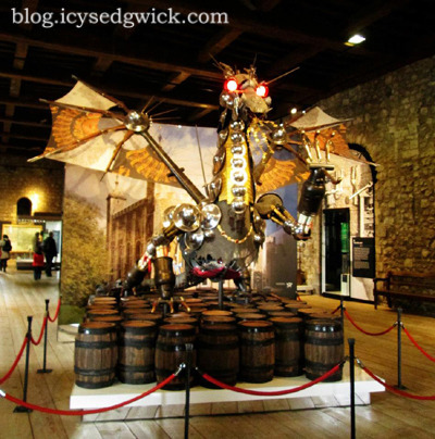 The Royal Armouries in the White Tower contain both the weaponry belonging to individual monarchs, such as Charles I's suit of armour and an articulated suit of armour for the thirteen year old Edward VI, as well as those weapons etc. that have been donated as gifts over the years. For example, they have a suit of samurai armour dating back to 1610. We came across this particular display, where a range of weapons and other items, were turned into a gigantic dragon. It was rather steampunk in its own way, and I couldn't not take a photo. I've been trying to find it online to see if there's a particular reason for its being there, but I can't find anything, so I don't know if it signifies anything, or a curator just got bored and wanted to do something a bit different with one of the displays.