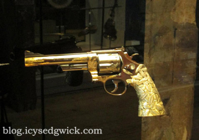 One of the displays is of weapons as art, and I couldn't not take this photo! Apparently the legendary US gunsmiths Smith & Wesson donated this revolver to the Royal Armouries in 1989. The Trustees of the Armouries commissioned Tiffany & Co. to decorate it as part of their policy to commission and collect fine craftsmanship. The decoration features leaves representing five different woods used in gun-making. They did also have a couple of other guns but they were a bit too 'bling' for my liking.