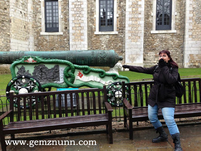 This is me faffing about outside the White Tower, pointing at a rather large cannon. I pinched this from Gemz, which is why I've tagged it with her web address instead of mine. (Give her website a look if you need to employ a web ninja!) As you can see, I have no problem with posing like an idiot in photographs, especially where heavy weaponry is involved. I think the rain had briefly stopped by this point, but the day was still somewhat dull and overcast. Still, we're Northerners so we're used to crap weather. All I can say is at least it wasn't snowing!