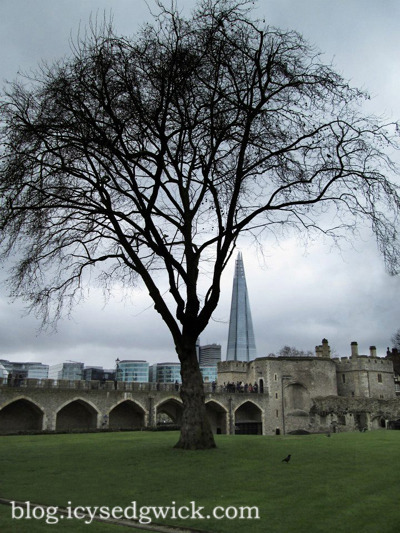 One of the strange things about the Tower is the fact it was once this imposing symbol of royal power, and it's now been dwarfed by the rest of modern London, now nothing more than a tourist attraction on the banks of the Thames. I took this photo from beside the south east corner of the White Tower, looking across the inner ward towards the Shard on the southern side of the Thames. The little black dot on the lawn to the right of the tree is one of the Tower's famous ravens, having a bit of a wander. While inside any of the buildings, you really do get a sense of the age and history of the place, but the second you get outside, the skyline is dominated by the hideous glass monuments to commerce that seem to have sprung up all over London. I suppose it's one of the signs of modern life, and perhaps I'm just too much of a traditionalist, but I really do prefer the 'historic' parts of London, as opposed to those glittering modern areas.