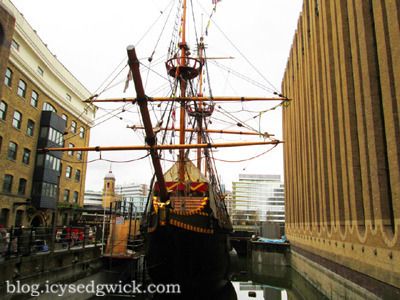 After the Tower, we crossed Tower Bridge, and took a walk along the South Bank towards the Tate Modern, passing Southwark Cathedral, Borough Market, and this, the Golden Hinde II in Pickford's Wharf. It's a replica of Sir Francis Drake's famous vessel, and while I've been on the original in Brixham, I've never been on the replica. It's something of a favourite for children's pirate themed parties (well Drake was a privateer, which is pretty much a polite way of saying he was a State-sponsored pirate) and there was one going on as we went past.