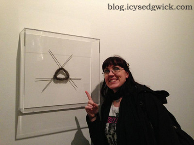 Here's me posing with an example of knitting in the Tate Modern, so really, if it's in an art gallery then it must be art...right? I've been campaigning for knitting to be considered art for a while! This is an example of tubular knitting, done on double pointed needles, and I think this one was done using nylon. That would absolutely wreck your fingers, but it certainly looks good It's actually Untitled by Marisa Merz, from 1969, and is in the Energy and Process gallery. I think knitting IS an art but it is also a process, and a very valuable one, so it was nice to come across something representative of my hobby in an art gallery.