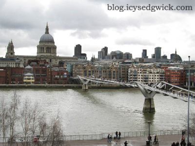 Here's the view of the Millennium Bridge from the viewing platform of the Tate Modern. Obviously that's the extremely distinctive dome of St Paul's Cathedral that you can see beyond all of the other buildings. The London skyline never fails to amaze me - Newcastle's is naturally somewhat smaller, and given our city centre stretches up a hill from the Quayside, our skyline is a bit more 'staggered', whereas the flat expanse of London gives you a good idea of its scale. I do quite like the Millennium Bridge, and if you've seen the Harry Potter films, you should recognise it.
