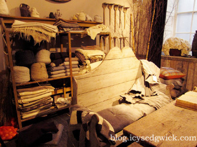 This is one of the rooms on display, and I'm determined that I will one day have a room like this in a house I own, with rustic wooden furniture and plenty of fabric and wool to hand. This is the Natural Room by Josephine Ryan, and she's created a room with naturally coloured yarns, coarse textures and layers. Other rooms in the exhibition featured interiors for modern living rooms, children's nurseries and entrance halls. If wool was a cheaper fabric, I'm sure I'd try and use a lot more of it at home! It was certainly a very inspirational exhibition and had me itching to reach for a ball of yarn and a pair of needles.