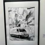 The first one, Tusen Serier’s Angiverisamhällets Baksidor, was just posted so you can read all the comics in their entirety at the Tusen Serier website, so I recommend you go do that, especially if you can’t see the actual exhibition at Fish tank Gallery/Panora in Malmö.