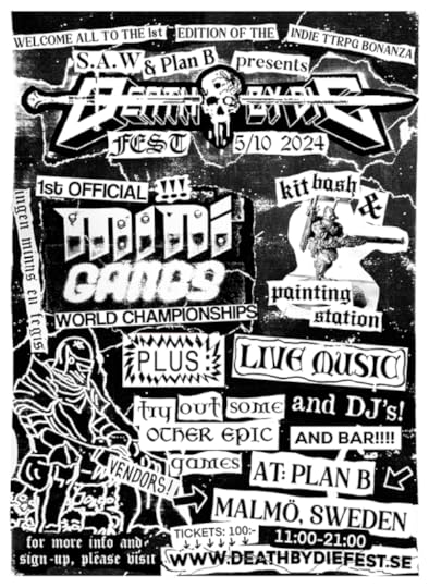 So a while ago, Anton Heed who has some zines in Fosfor and who is also a member of our collective workshop, Fanzineverkstaden, came to print out the rules and worldbuilding documents for his game, Muterad Medeltid i Europas Ruiner (Mutated Middle Ages in the Ruins of Europe). He told me about it and it seemed interesting. Long story short, I ended up at the Death By Die fest with Kinga, who was there to sell dice as Dice Dominion. And it was fun! I played 2 games in that setting and even won the first bout, though it didn’t feel like it was about winning. It was more like how I described it, an RPG focusing mostly on the startegic warplay.