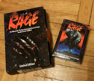 We also played a few Collectible Card Games. The first two that reached Varberg were Magic the Gathering (which we never got into) and Doomtrooper (the one we started playing). I always lost because those games were often designed so that whoever could afford to get the most cards would be able to build the best deck and would always win, and that wasn’t me. We also tried Mythos, the Lovecraft-based CCG, and Rage. Rage I still think was the best of them. It was based on Werewolf: the Apocalypse and the system favored strategic thinking and an optimized deck, which meant that you could actually do pretty well even if you didn’t have the most cards. I tried playing it again a few years ago and it actually still holds up.