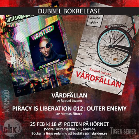 There will be a small exhibition of prints from Piracy is Liberation. There will be wine. The books will be presented, with a reading from Vårdfällan. The books will be there, the authors will be signing, it’ll be great!
