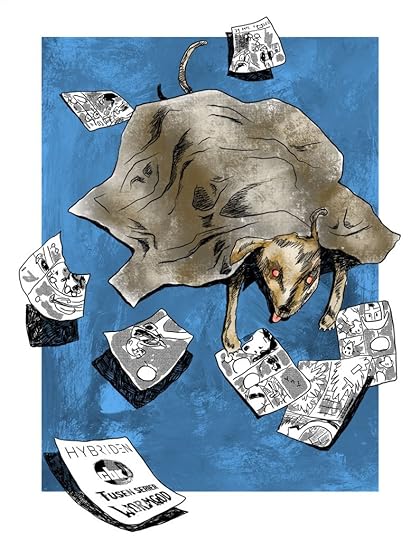 If you are the first to identify which comic pages are surrounding the dog, I’ll give you a gift. Email me with book title and page number or part of the dialogue from the page (since I don’t normally use pagination) for all of them*. And let me know which one of my books you need as reward and I will send it to you.