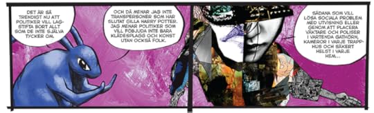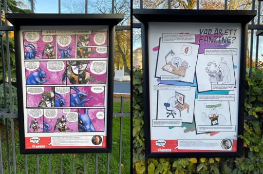 Yesterday, an exhibition opened that features a bunch of local comics creators in order to highlight Malmö as a comics city. Including me and Kinga Dukaj, as representing Hybriden and Fanzineverkstaden. You can find the exhibition at Norra Parkgatan, along Folkets Park in Malmö.