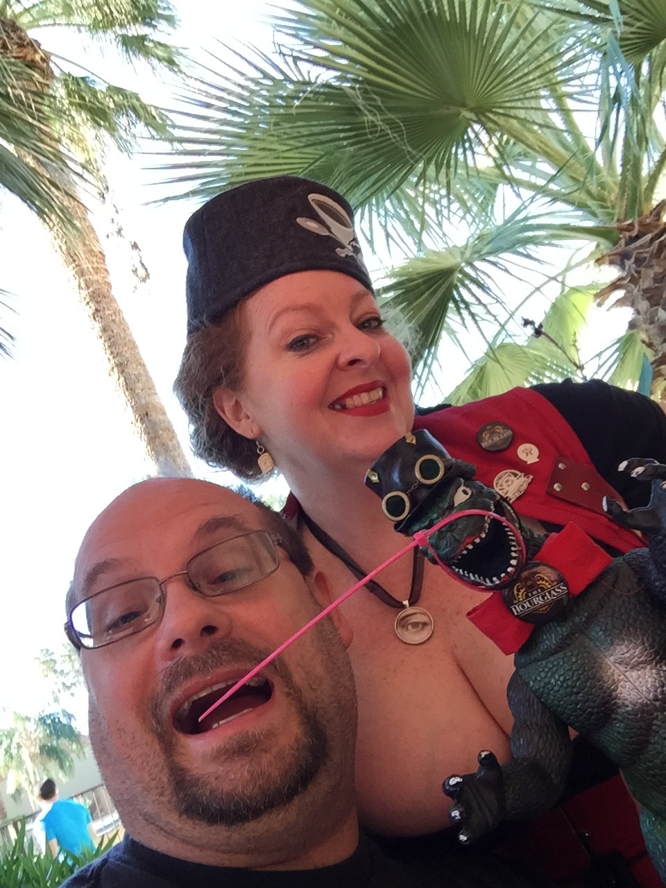 Bob Nelson, Madam Askew and Steampunk cosplaying Godzilla, er, Gojira.
