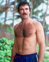 Perhaps it has more to do with society and the media. We blame that for most everything else, don't we? After all, my early, formative years took place in the 70's, where mustaches were thick, hair was long and chests were hairy.Now, I gotta admit, Tom Selleck still does it for me today. Maybe one of the few older men who makes me starry eyed at the mere thought of a cocky smile... and those dimples....ahhhh....oh snap! Where were we?