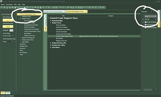Now to the highlighted area in the left circle ~ Control Freak: Regina's Story. It's important you label your Story properly. Once your file is created in the export, this is the name assigned to the actual download. For example, when I pull up the mobi created by SB in my Kindle, it'll show Control Freak: Regina's Story. I mention this because the default name for the Story document is "Story." If you don't change this, then the name on your Kindle will show "Story" and not the actual name of the story. Got it? Good.
