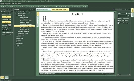 Right click your Story and choose Export. Everything which is checked "Include in Manuscript" (see the circled area on the right in image 2) will be part of your export file. An alternative, which I did with Regina's Story is to only export sections of your manuscript. I collect Control Freak Stories in one file in order to keep everything together. So instead of right clicking the Story (Control Freak: Regina's Story), I right clicked the chapter "Regina's Story." Doing so only exports the documents under Regina's Story.