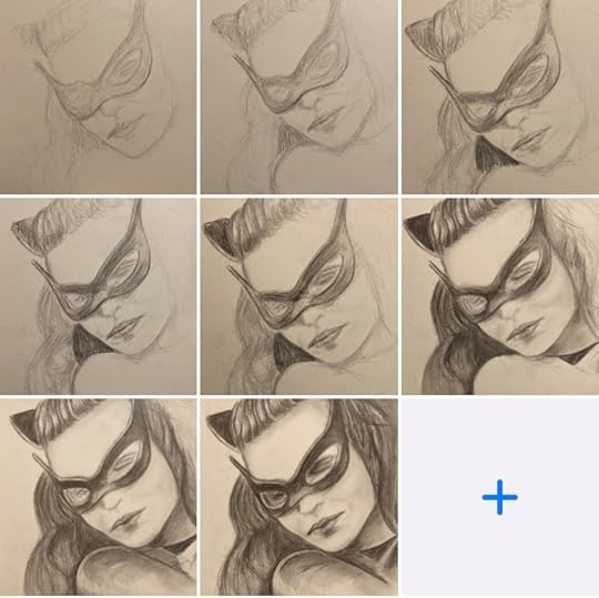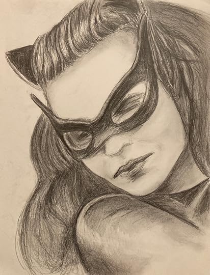 I love Batman! I’m definitely a fan of the 60’s tv series and enjoy drawing or painting the characters. Here’s an 11×14 sketch of Julie Newmar as Catwoman…