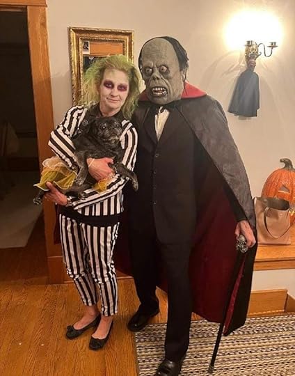 This year I went as Phantom of the Opera. I used the version with the eyes cut out of the mask. It just felt more traditional in the Don Post sense of the word. A friend of mine used the version with the eyes left in the mask. His girlfriend went as Beetlejuice. Another friend of mine went with his grandkids, wearing one of my Wolfman masks. A couple went as Frankenstein’s monster (my mask) and his Bride. There were others, but at the moment-I’m not sure where those photos are? Anyway, check it out…