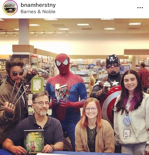 It started off with a book signing at Barnes & Noble in Amherst,NY. Accompanying me, were local cosplay superheroes Captain America, Spider-Man and Wolverine. Also on hand was their trusty photographer, Todd.
