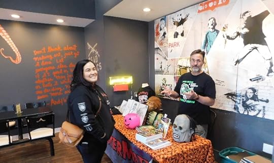 Friends/Fans in Texas, Canada, Florida and other locales have been popping up, wearing our shirts. I’ve had folks wearing my masks and reading my books-but this was alien territory to me.