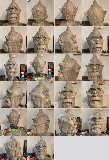 In this collage, you can see (from the bottom to the top) my sculpting process. After that, like I said- I broke the mold and scrapped it out. Tune into the next blog entry Cyclops Mask Part 2-The Success!