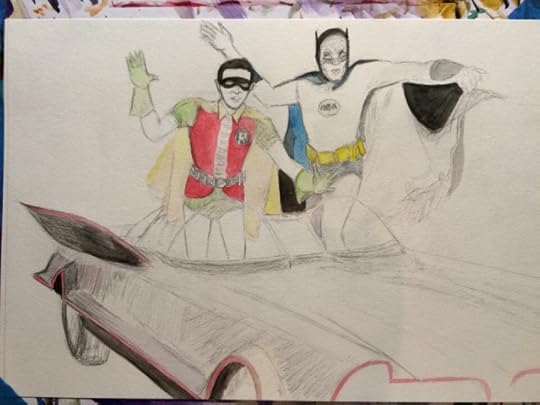 I decided to paint Batman -Adam West and Robin -Burt Ward jumping out of the Batmobile. The reference photo I used is one of my all time favorite images! Please enjoy…