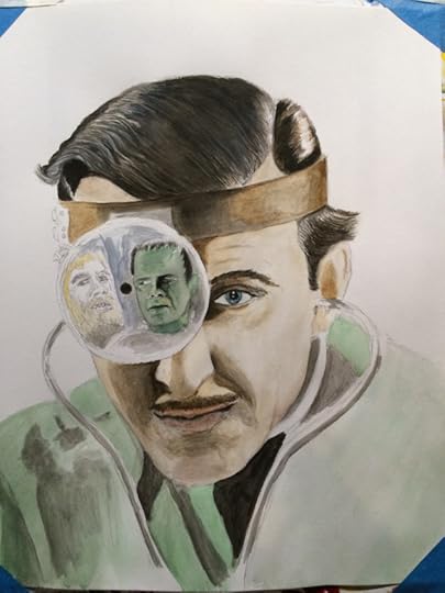 I love “Son of Frankenstein” and thought I’d do a painting of Dr. Frankenstein (Basil Rathbone) and some reflective beings. You’ll see what I mean…